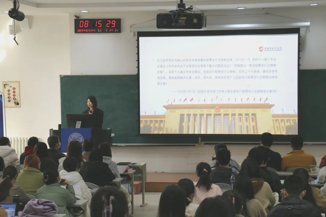 “拥抱注册制,共享高质量”本次应用金融系本科生实践教学活动就全面注册制与资本市场高质量发展进行了探讨。相信通过本次讲座的交流,应用金融系学生的能够更加了解注册制,对用好注册制,赋能未来高质量发展有更深刻的认识。